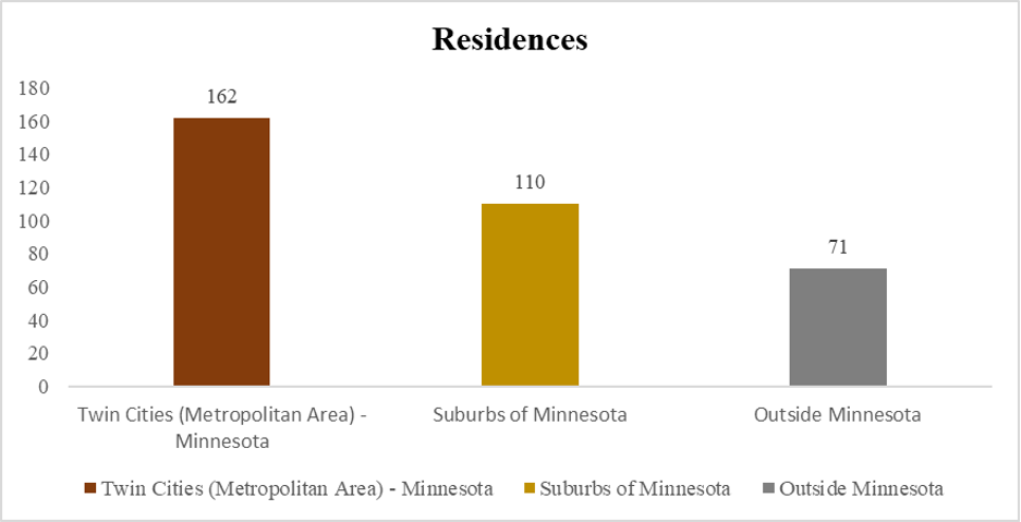 Although the smallest of the three groups, this category still represents a significant portion of the sample, comprising just over one-fifth of respondents. Including perspectives from outside Minnesota adds an important dimension to the survey, enabling comparisons between Minnesota-based experiences and those from other regions. Responses from this group may provide insights into how Minnesota’s environment, economy, or policies differ from other areas, offering a broader context for interpreting the survey results.
